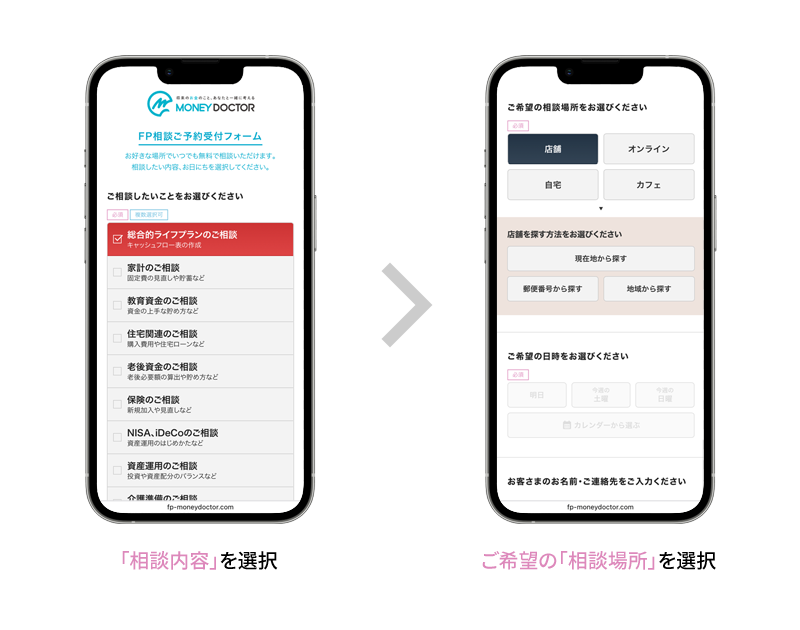 お客さまのエリアとご相談内容に合わせて担当FPを調整します。