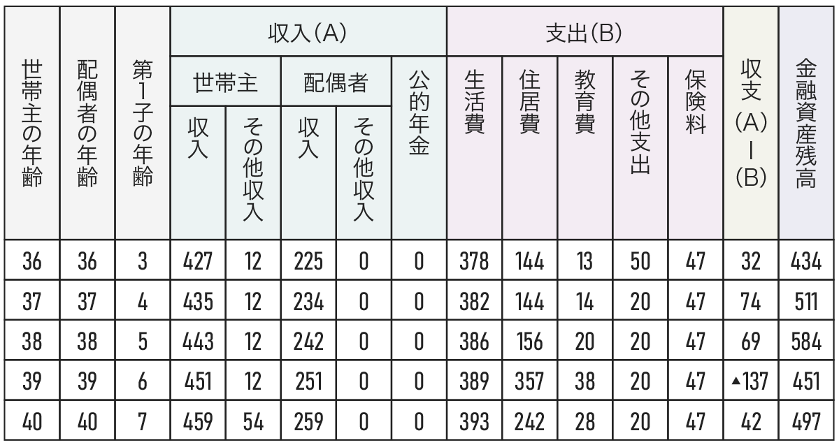 現在から向こう数年間の家計の変化を表に書き出してみることで、将来計画に必要なさまざまなことが確認できます。