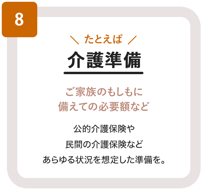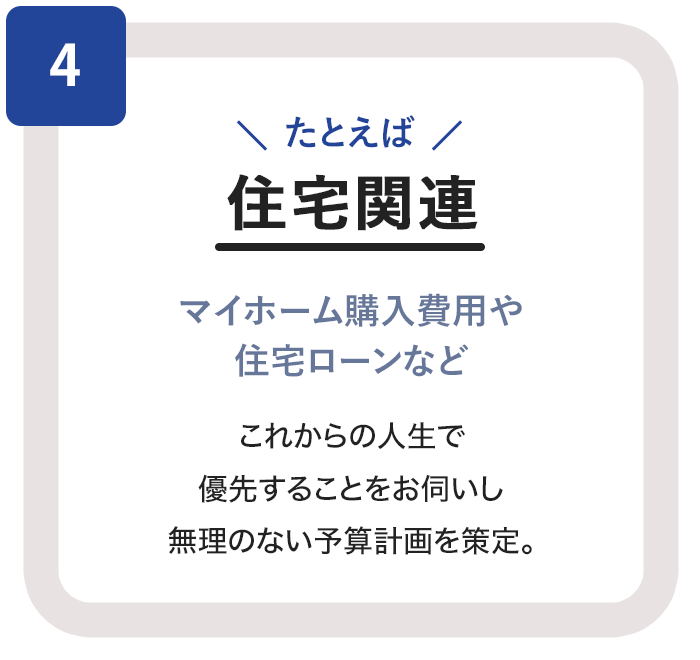 マイホーム購入、老後の備えなど、