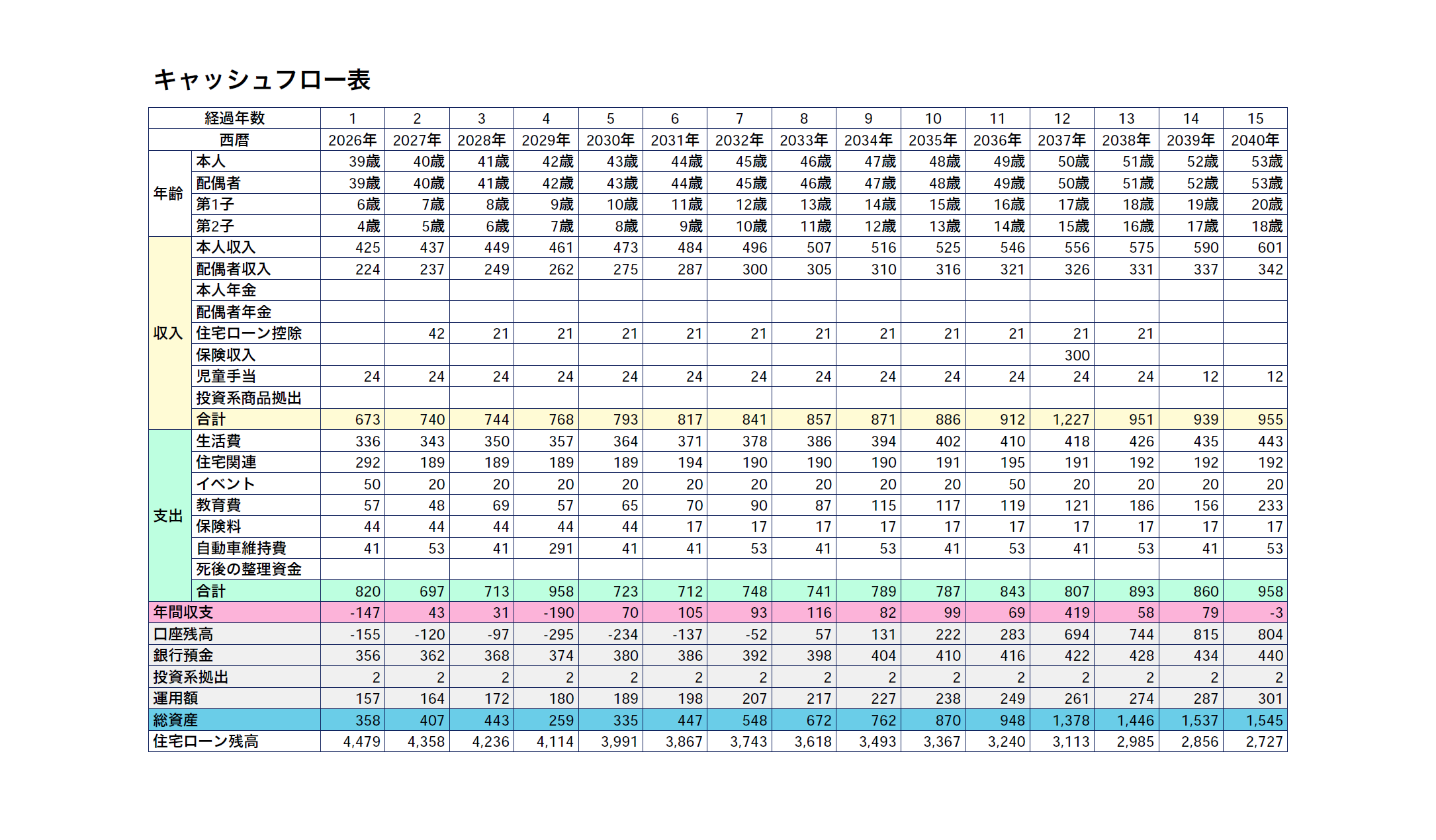 ライフプランキャッシュフロー表