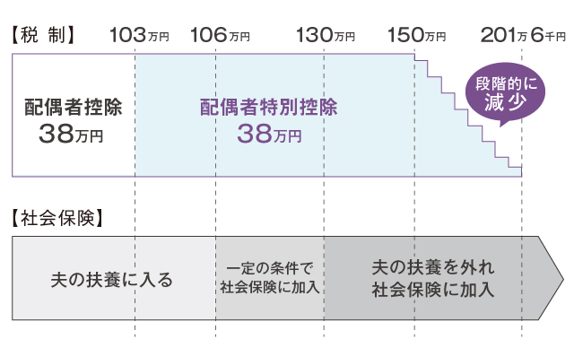 配偶者が自分で社会保険料を支払うことになる年収の分岐点は2つあります。
