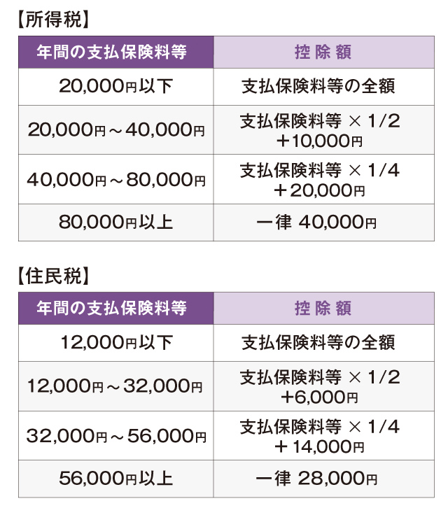 具体的な控除額は、以下の表にあてはめて計算されます(平成24年1月1日以降に締結した契約の場合)。